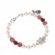 Weiße Süßwasser-Zuchtperlen (ca. 6mm), hellroter Erdbeerquarz (ca. 6mm), roter Granat (ca. 6mm), roter Rhodochrosit (ca. 5mm), grüner Peridot (ca. 5mm).